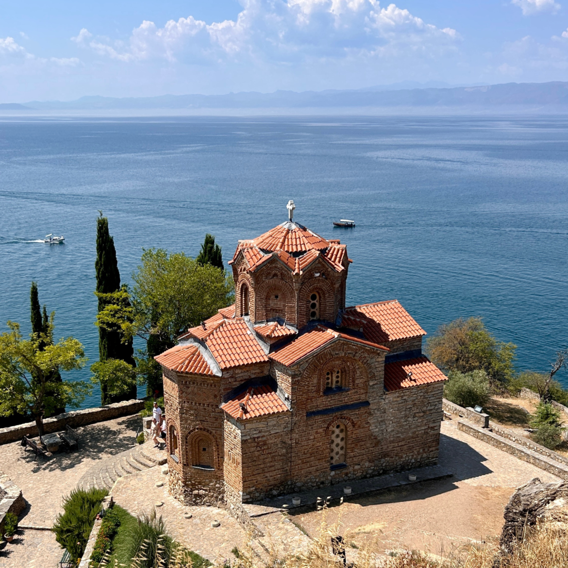 Outro ponto imperdível é a Igreja de São João em Kaneo, situada em um penhasco com vista para o lago. Esta igreja, com sua arquitetura bizantina e afrescos impressionantes, é um dos cartões-postais mais famosos de Ohrid. A curta caminhada até lá, através de um caminho arborizado, é uma experiência que combina tranquilidade e beleza.